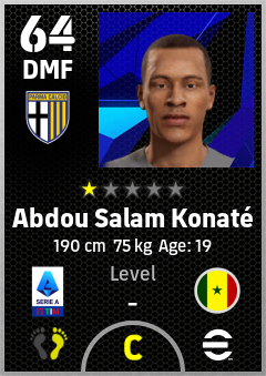. Abdou Salam Konaté is a Defensive Midfielder footballer from Senegal who plays for Parma Calcio 1913 in eFootball 2026.