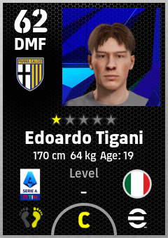 . Edoardo Tigani is a Defensive Midfielder footballer from Italy who plays for Parma Calcio 1913 in eFootball 2026.