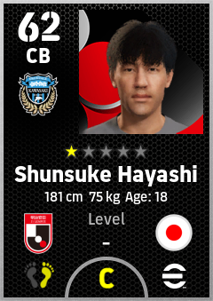 . Shunsuke Hayashi is a Center Back footballer from Japan who plays for Kawasaki Frontale in eFootball 2026.