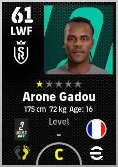 . Arone Gadou is a Left Wing Forward footballer from France who plays for Stade De Reims in eFootball 2026.