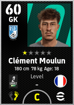 . Clément Moulun is a Goalkeeper footballer from France who plays for Usl Dunkerque in eFootball 2026.