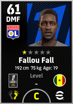 . Fallou Fall is a Defensive Midfielder footballer from Senegal who plays for Olympique Lyonnais in eFootball 2026.