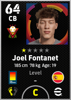 . Joel Fontanet is a Center Back footballer from Spain who plays for Valencia Bn in eFootball 2026.