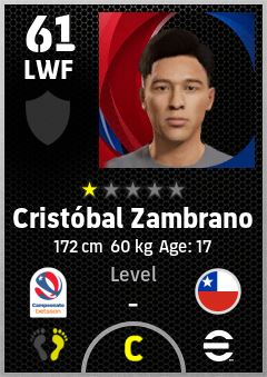 . Cristóbal Zambrano is a Left Wing Forward footballer from Chile who plays for Concepción Aa in eFootball 2026.