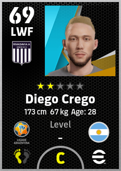 . Diego Crego is a Left Wing Forward footballer from Argentina who plays for Rivadavia A in eFootball 2026.
