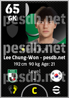 . Lee Chung-Won is a Goalkeeper footballer from Korea Republic who plays for Tegevajaro Miyazaki in eFootball 2026.
