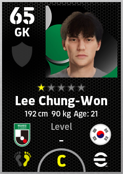 Lee Chung-Won is a Goalkeeper footballer from Korea Republic who plays for Tegevajaro Miyazaki in eFootball 2026.
