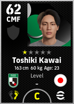 . Toshiki Kawai is a Center Midfielder footballer from Japan who plays for Tegevajaro Miyazaki in eFootball 2026.