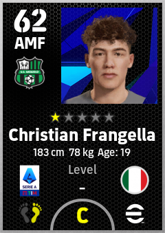 . Christian Frangella is a Attacking Midfielder footballer from Italy who plays for Sassuolo Nv in eFootball 2026.