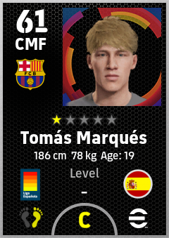 . Tomás Marqués is a Center Midfielder footballer from Spain who plays for Fc Barcelona in eFootball 2026.