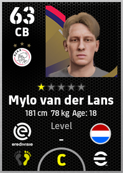 . Mylo Van Der Lans is a Center Back footballer from Netherlands who plays for Ajax in eFootball 2026.
