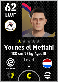 . Younes El Meftahi is a Left Wing Forward footballer from Netherlands who plays for Sparta Rotterdam in eFootball 2026.