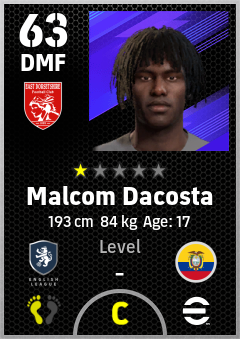 . Malcom Dacosta is a Defensive Midfielder footballer from Ecuador who plays for Bournemouth Rb in eFootball 2026.