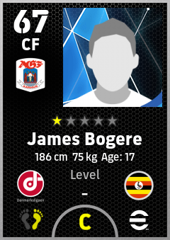 . James Bogere is a Center Forward footballer from Uganda who plays for Aarhus Hb in eFootball 2026.
