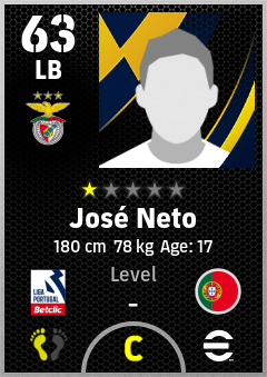 . José Neto is a Left Back footballer from Portugal who plays for Sl Benfica in eFootball 2026.