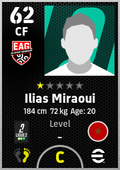 . Ilias Miraoui is a Center Forward footballer from Morocco who plays for En Avant Guingamp in eFootball 2026.