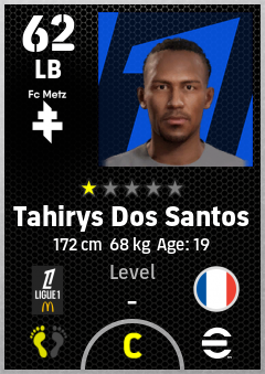 . Tahirys Dos Santos is a Left Back footballer from France who plays for Fc Metz in eFootball 2026.