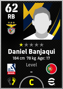 . Daniel Banjaqui is a Right Back footballer from Portugal who plays for Sl Benfica in eFootball 2026.