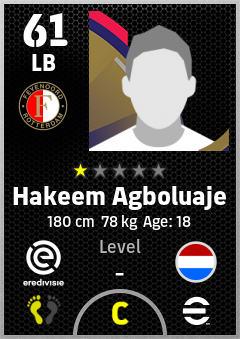 . Hakeem Agboluaje is a Left Back footballer from Netherlands who plays for Feyenoord in eFootball 2026.