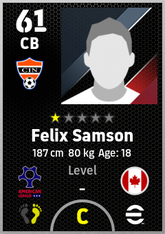 . Felix Samson is a Center Back footballer from Canada who plays for Cincinnati Ob in eFootball 2026.