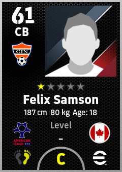 . Felix Samson is a Center Back footballer from Canada who plays for Cincinnati Ob in eFootball 2026.