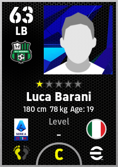 . Luca Barani is a Left Back footballer from Italy who plays for Sassuolo Nv in eFootball 2026.