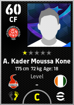. A. Kader Moussa Kone is a Center Forward footballer from Côte D'ivoire who plays for Fatih Karagümrük Sk in eFootball 2026.