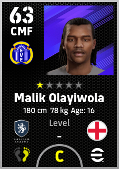 . Malik Olayiwola is a Center Midfielder footballer from England who plays for Everton B in eFootball 2026.
