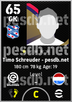 . Timo Schreuder is a Goalkeeper footballer from Netherlands who plays for Sc Heerenveen in eFootball 2026.