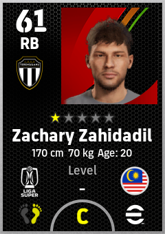 . Zachary Zahidadil is a Right Back footballer from Malaysia who plays for Terengganu Fc in eFootball 2026.