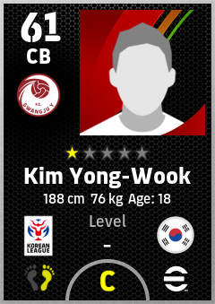 . Kim Yong-Wook is a Center Back footballer from Korea Republic who plays for Gwangju Y in eFootball 2026.