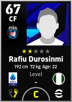. Rafiu Durosinmi is a Center Forward footballer from Nigeria who plays for Pisa Sporting Club in eFootball 2026.