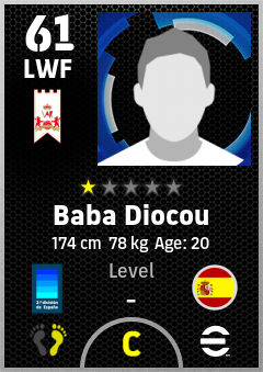 . Baba Diocou is a Left Wing Forward footballer from Spain who plays for Granada Rb in eFootball 2026.