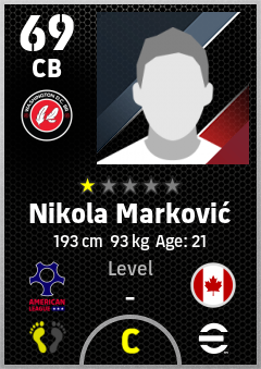 . Nikola Marković is a Center Back footballer from Canada who plays for Washington D.c. Br in eFootball 2026.