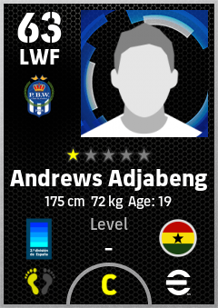 . Andrews Adjabeng is a Left Wing Forward footballer from Ghana who plays for Vasco Gipuzkoa Ab Ii in eFootball 2026.