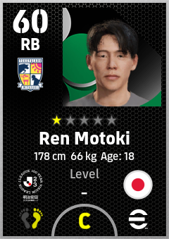 . Ren Motoki is a Right Back footballer from Japan who plays for Tegevajaro Miyazaki in eFootball 2026.