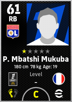 . P. Mbatshi Mukuba is a Right Back footballer from France who plays for Olympique Lyonnais in eFootball 2026.