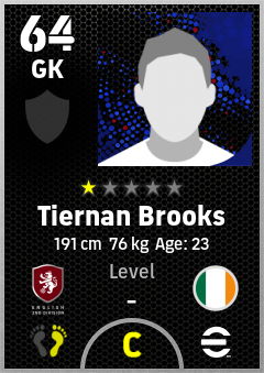 . Tiernan Brooks is a Goalkeeper footballer from Republic Of Ireland who plays for Charlton Rw in eFootball 2026.
