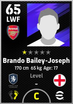 . Brando Bailey-Joseph is a Left Wing Forward footballer from England who plays for Arsenal Fc in eFootball 2026.