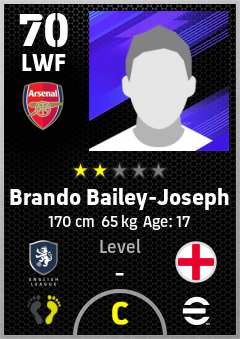 . Brando Bailey-Joseph is a Left Wing Forward footballer from England who plays for Arsenal Fc in eFootball 2026.