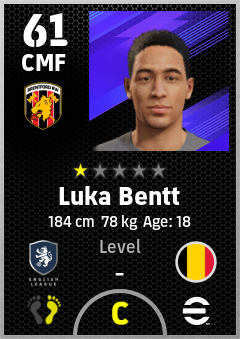 . Luka Bentt is a Center Midfielder footballer from Belgium who plays for Brentford Rw in eFootball 2026.