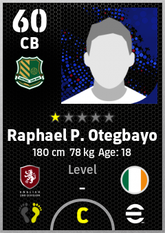 . Raphael P. Otegbayo is a Center Back footballer from Republic Of Ireland who plays for Stoke Rw in eFootball 2026.