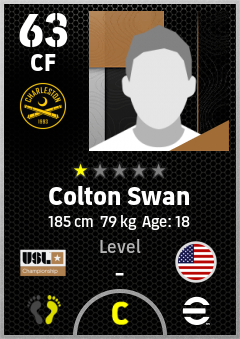 . Colton Swan is a Center Forward footballer from United States who plays for Charleston Battery in eFootball 2026.