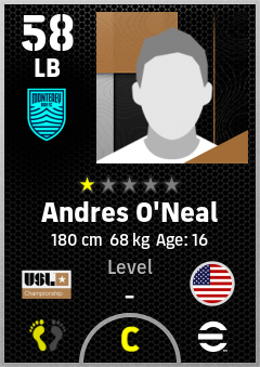 . Andres O'neal is a Left Back footballer from United States who plays for Monterey Bay F.c. in eFootball 2026.