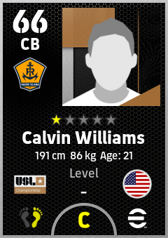 . Calvin Williams is a Center Back footballer from United States who plays for Rhode Island Fc in eFootball 2026.
