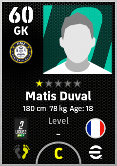 . Matis Duval is a Goalkeeper footballer from France who plays for Pau Fc in eFootball 2026.