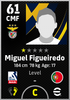. Miguel Figueiredo is a Center Midfielder footballer from Portugal who plays for Sl Benfica in eFootball 2026.