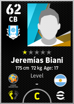 . Jeremías Biani is a Center Back footballer from Argentina who plays for Alberdi A in eFootball 2026.