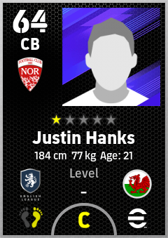 . Justin Hanks is a Center Back footballer from Wales who plays for Nottingham Rw in eFootball 2026.