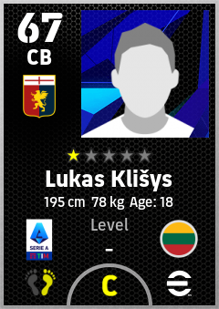 . Lukas Klišys is a Center Back footballer from Lithuania who plays for Genova Rb in eFootball 2026.